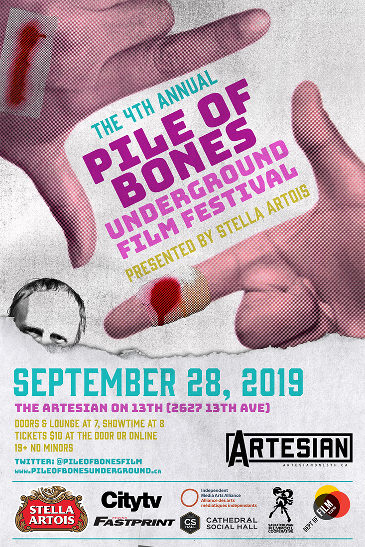 I created the poster, program, and social media content for the 2019 Pile of Bones Underground Film Festival. 2019.